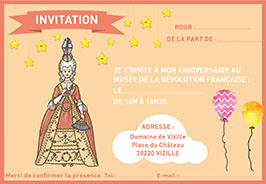 Il est possible de fêter son anniversaire au musée de la Révolution, dans le Domaine de Vizille. Les enfants, costumés comme il se doit, visiteront avec un guide le château. Ensuite, ils participeront à un atelier « Styliste au musée » où ils habilleront de petites figures en papier. Ils repartiront avec. Le goûter, préparé par les parents, a lieu après l’atelier, dans la salle pédagogique du musée.