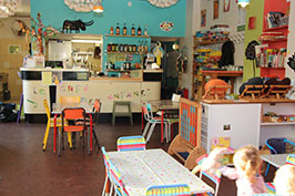 Niché dans le quartier des Eaux-Claires à Grenoble, le Café des Enfants a pour vocation, comme son nom l’indique, l’accueil des bébés, des enfants et des familles. Dans cet esprit de partage, l’association La Soupape, qui gère les lieux, propose une formule « anniversaire » qui se décline en trois temps : un atelier créatif encadré par un animateur comme la création d’un bonhomme mou, d’oisillons colorés, d’insectes imaginaires ou de pantins rigolos,..