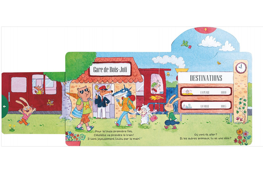 Ce petit livre carré cartonné raconte le premier voyage en train de Côtelette.