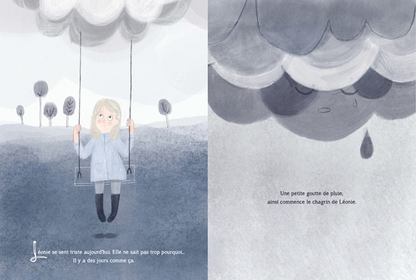 « Une petite goutte de pluie. Ainsi commence le chagrin de Léonie. Elle lève les yeux vers le ciel et voit tous ces nuages qui s’amoncellent. »