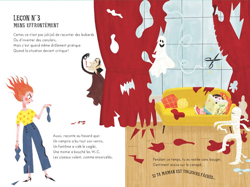 Glénat jeunesse a sorti un livre amusant, à contre-courant des livres éducatifs prônant la « bienveillance éducative » : « Comment défâcher une maman fâchée en dix leçons » met en scène une petite fille qui vient de faire des bêtises face à une maman furibonde.
